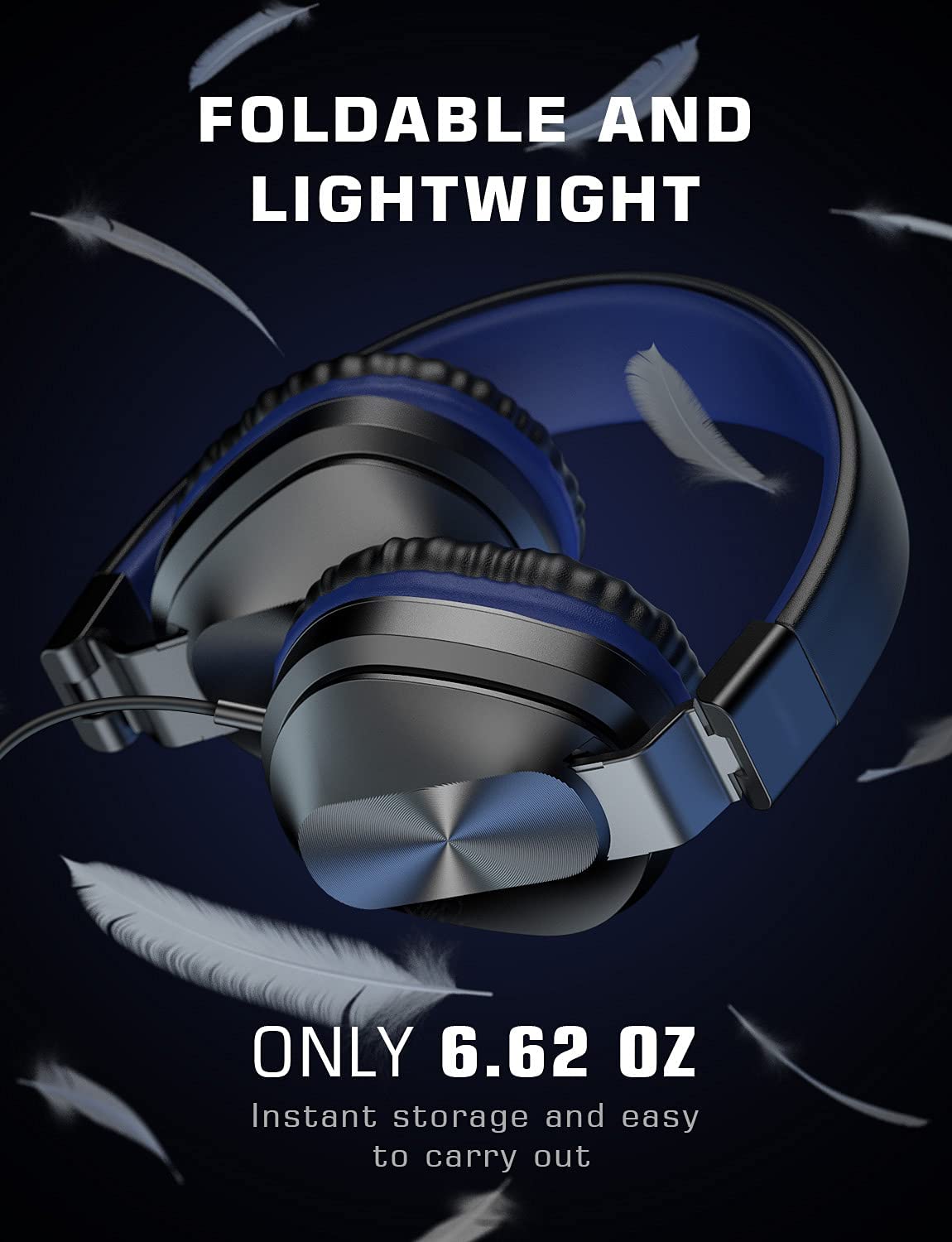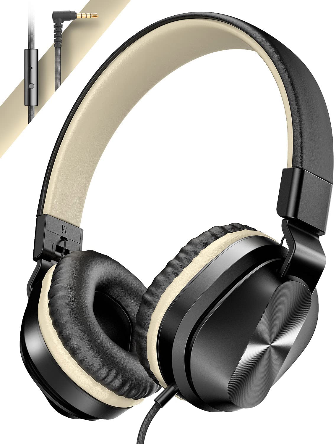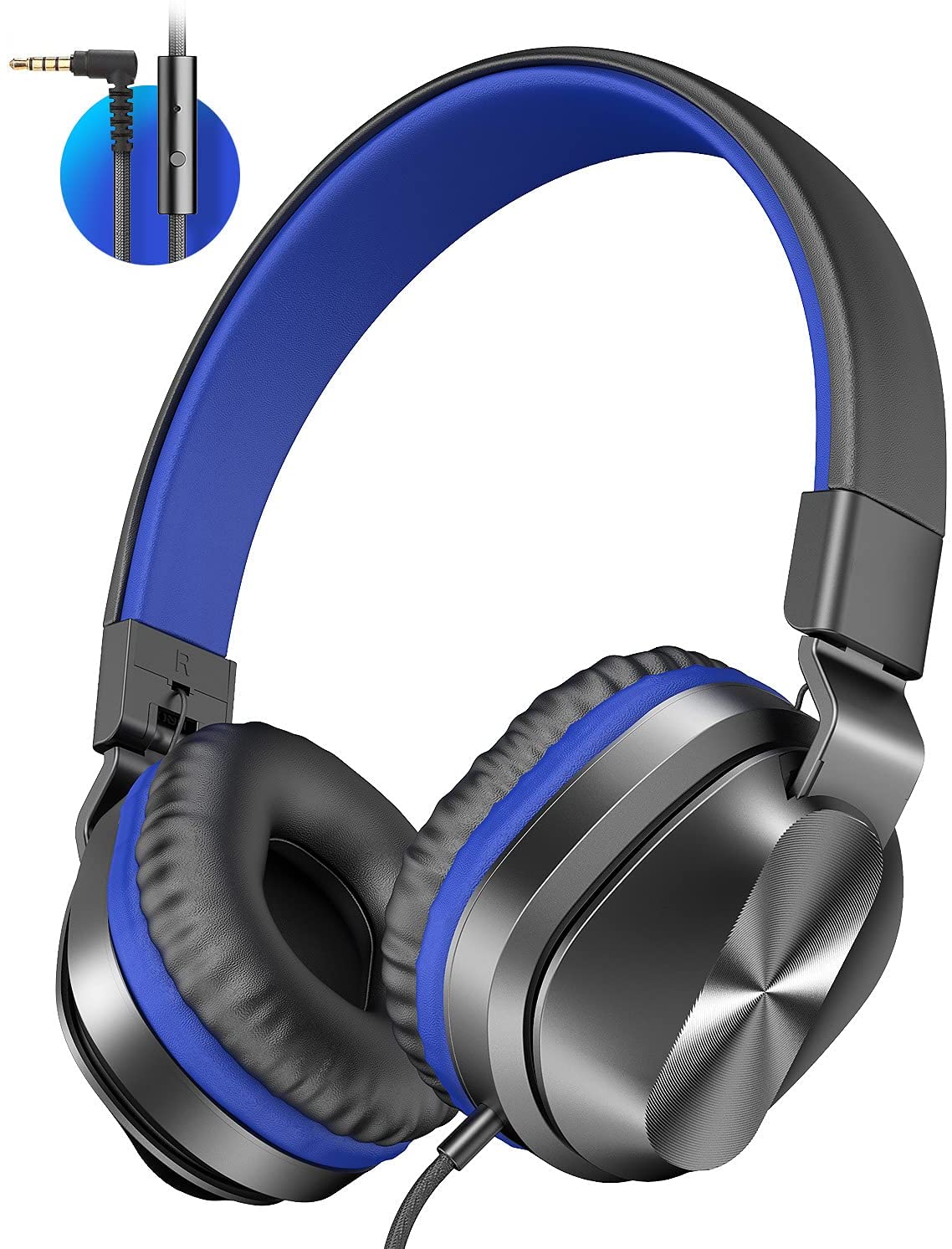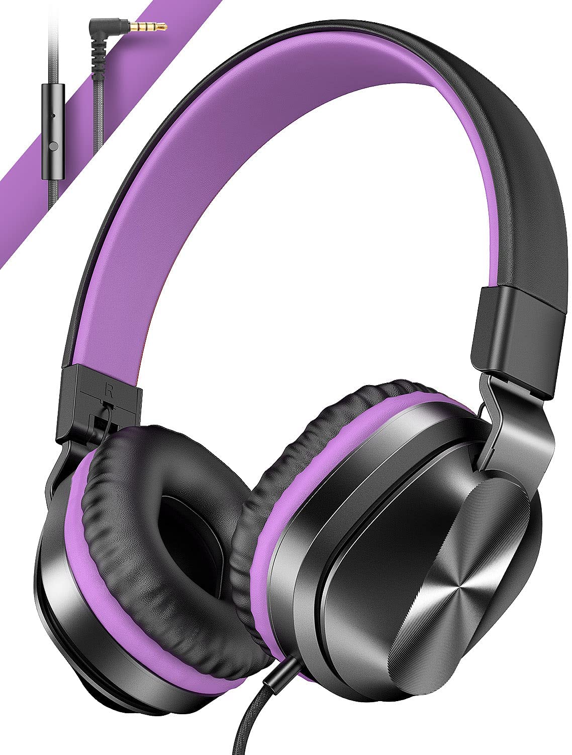 On-Ear Headphones with Microphone, Universal Foldable Wired Headphones for Adults Children Boys Girls Kids, Lightweight Portable Stereo Headphones with 1.5M Tangle-Free Cord for School Home Travel