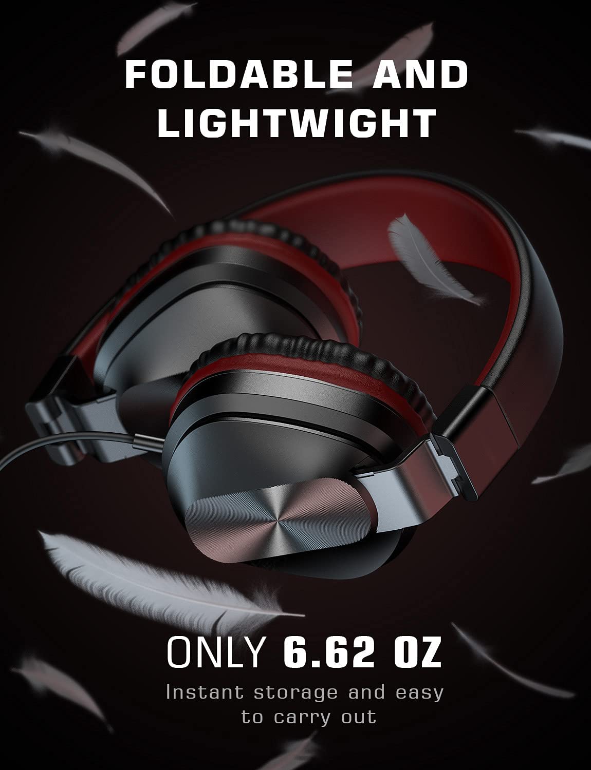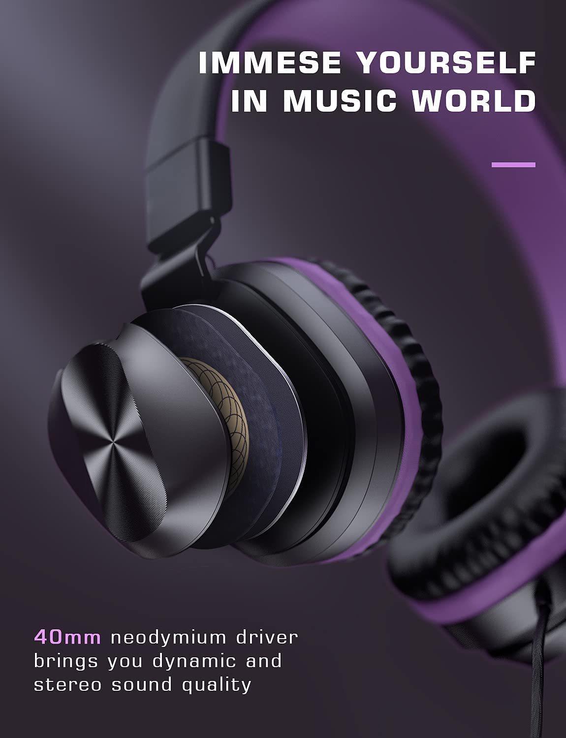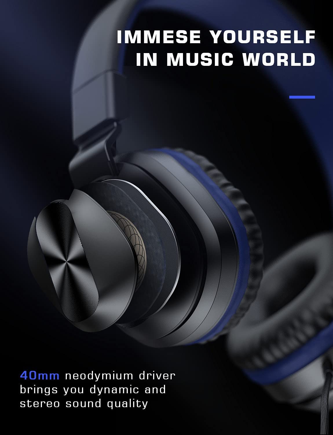 On-Ear Headphones with Microphone, Universal Foldable Wired Headphones for Adults Children Boys Girls Kids, Lightweight Portable Stereo Headphones with 1.5M Tangle-Free Cord for School Home Travel