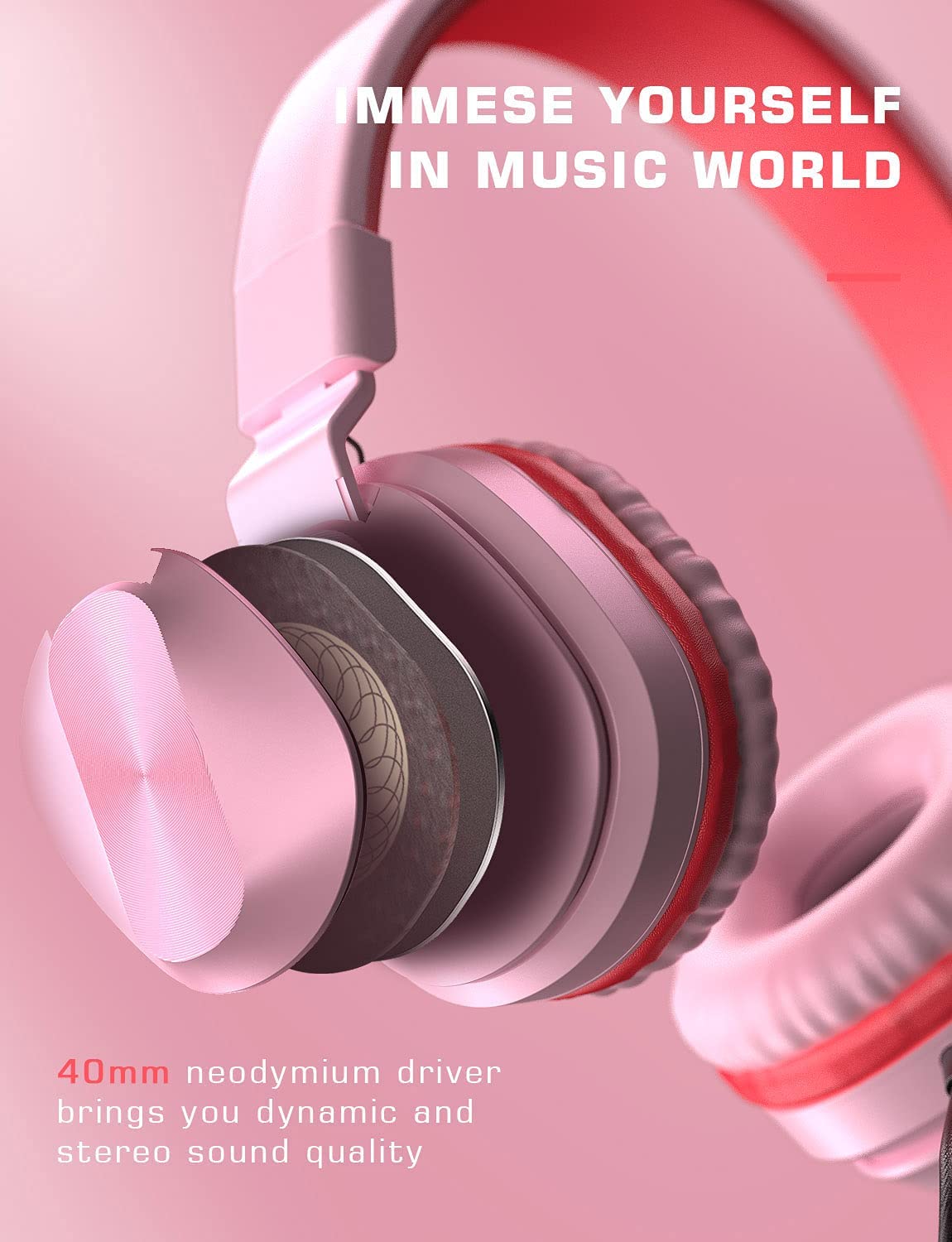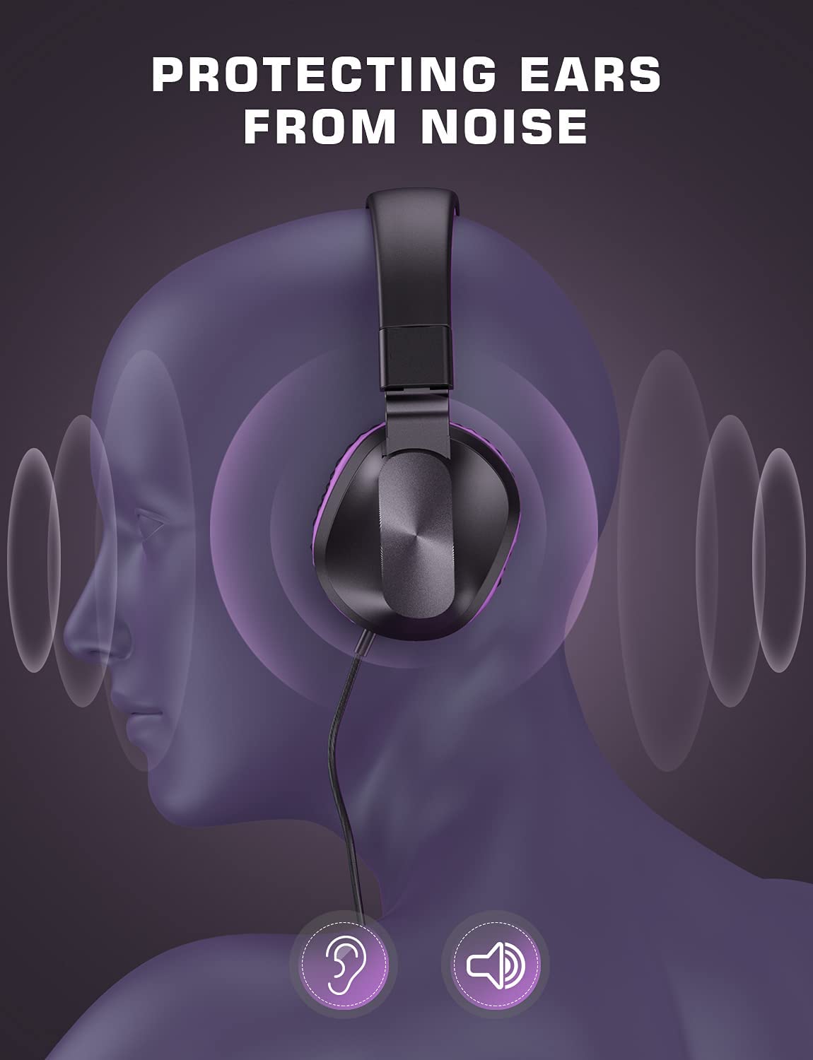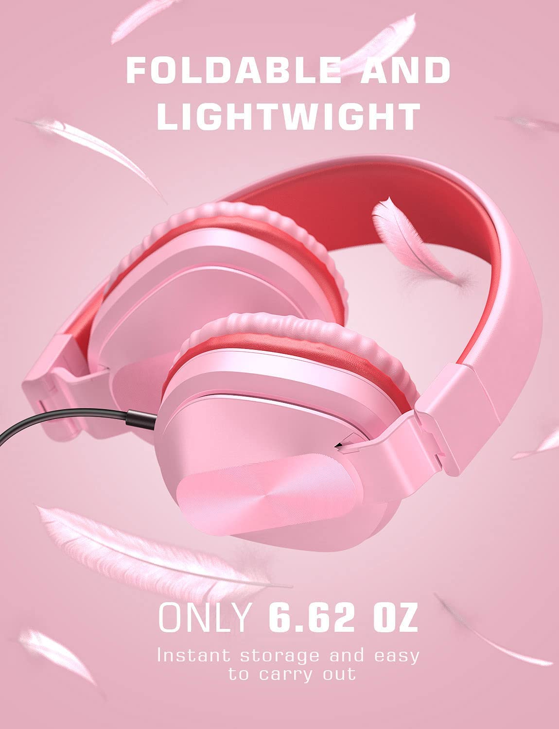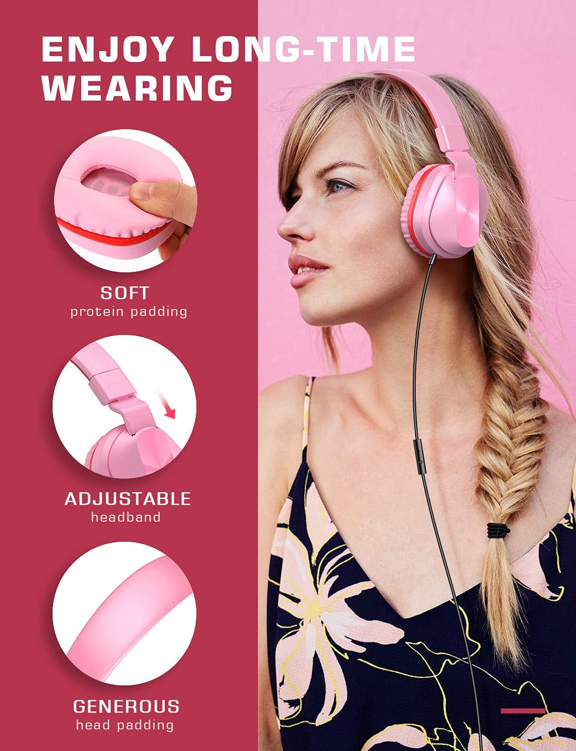 On-Ear Headphones with Microphone, Universal Foldable Wired Headphones for Adults Children Boys Girls Kids, Lightweight Portable Stereo Headphones with 1.5M Tangle-Free Cord for School Home Travel
