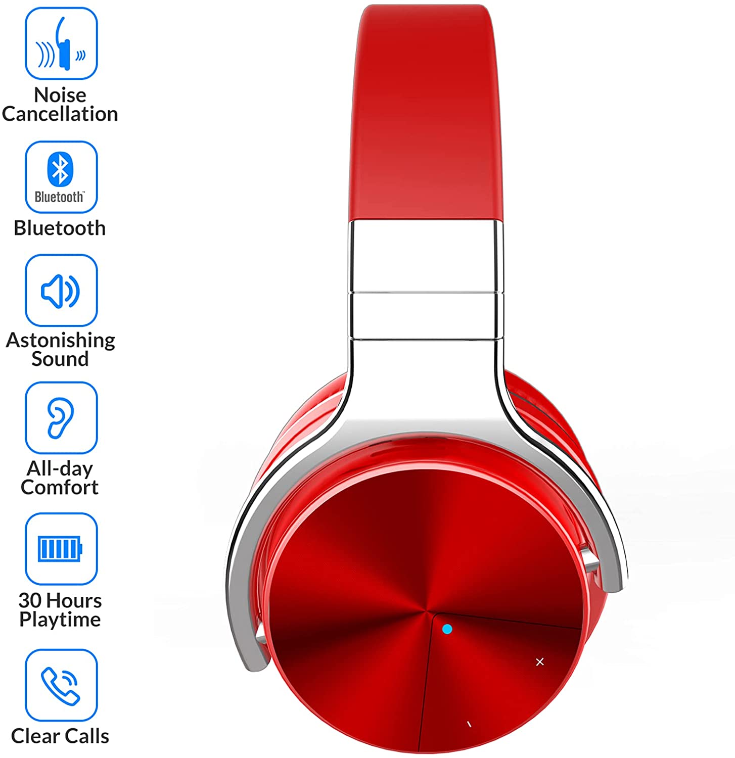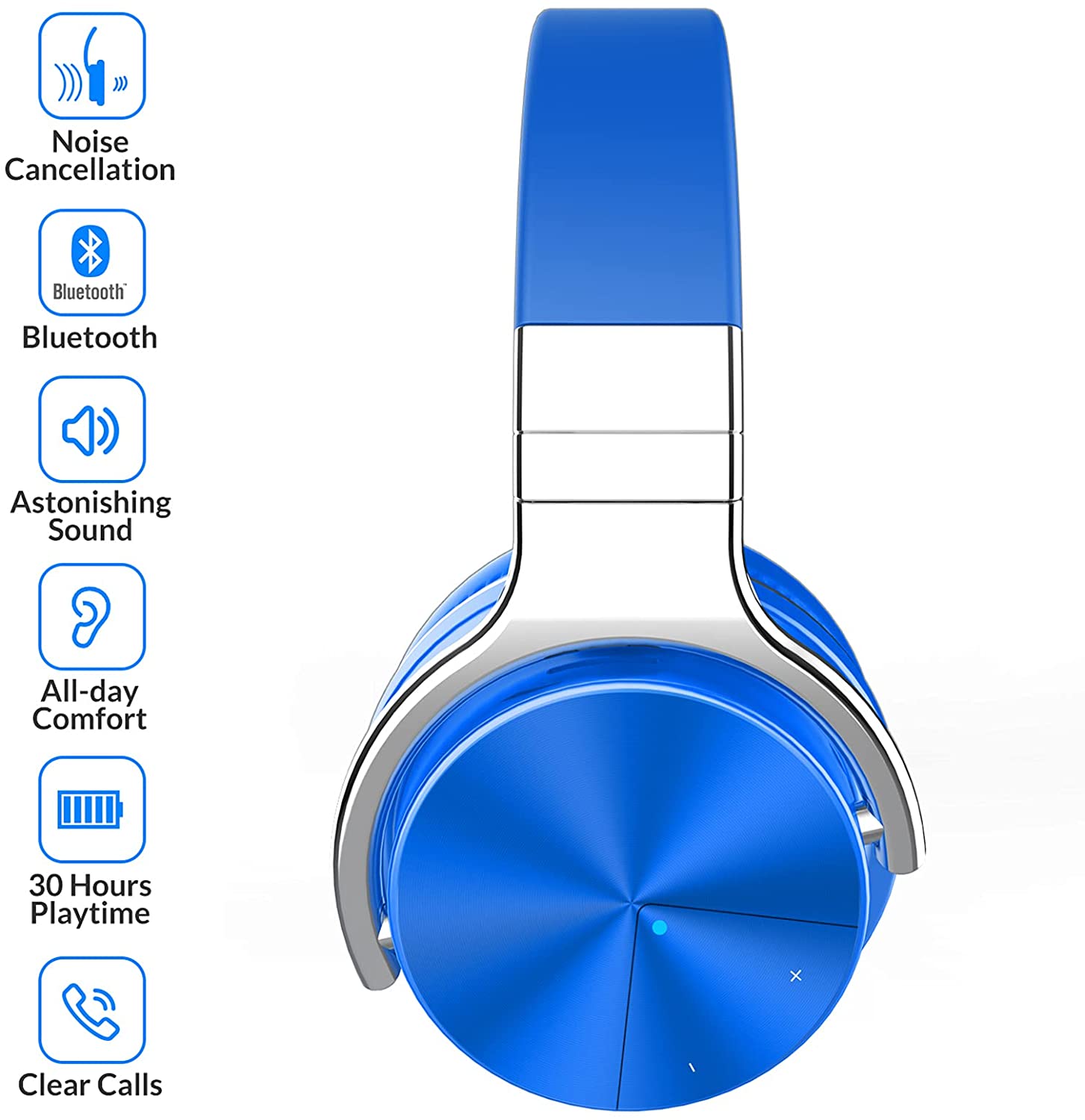 Silensys E7 PRO Active Noise Cancelling Headphones Bluetooth Headphones with Microphone Deep Bass Wireless Headphones Over Ear, Comfortable Fit, 30H Playtime for TV/Computer/Cellphone, Black